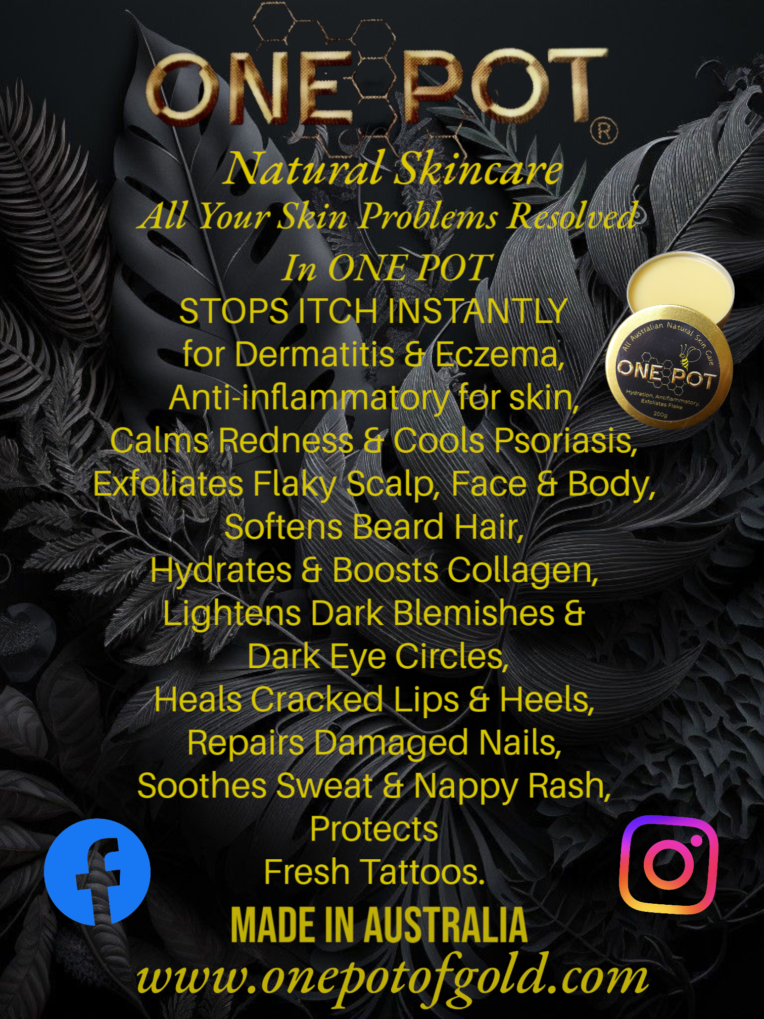 Without any kind of mint, ONE POT calms and cools burning itchy dermatitis, eczema, psoriasis and chaffing instantly, and calms redness to pink skin for psoriasis.